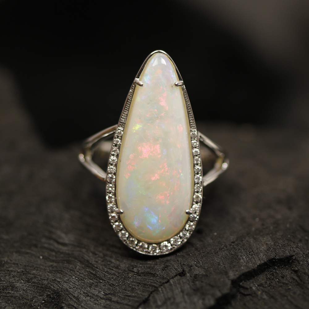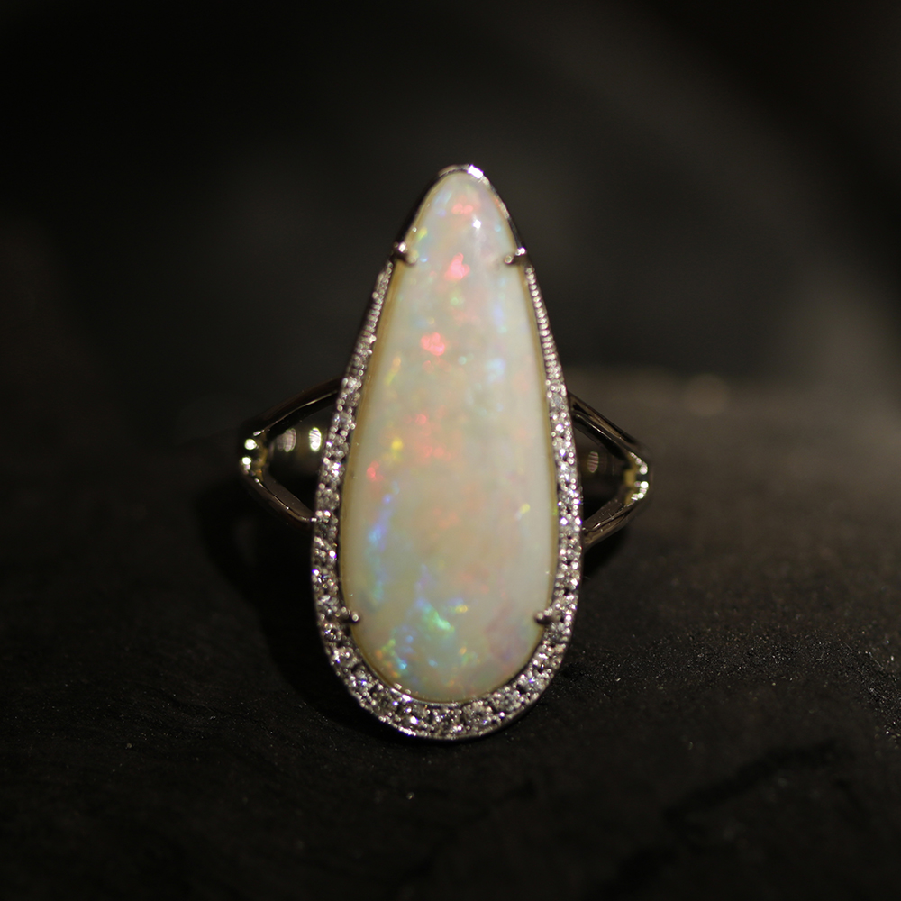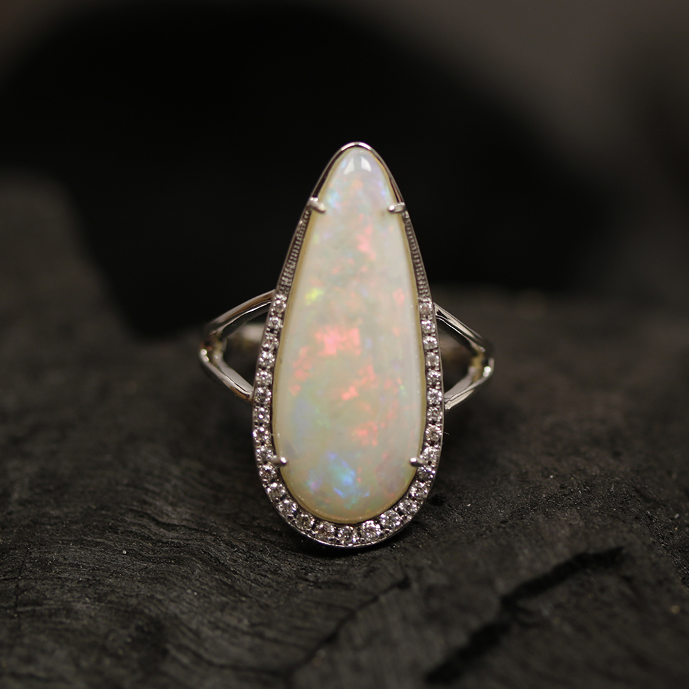 Australian Fire Opal studded with White Gold making it the most eye catching gemstone jewelry because of its multi color hues. The Jewelry is studded with certified Natural & Premium Australian Opal Stones and SI Quality of Natural Diamonds. Opal Jewelry can be worn in many uses like to strengthen Venus planet in Astrology, inspite of this one can wear it as a modern Wedding Engagement ring. Our unique design embosses a style statement of luxuriousness and living on the wearer life.